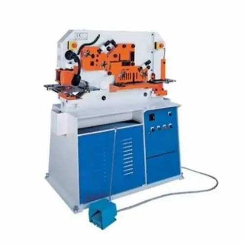 Semi-automatic hydraulic ironworker, 50-60 Hz, 200~680V. Upto 50 Ton capacity, 5 Kw motor, 200Kg weight. Shears 0-500mm width, 5-6mm thickness for various metals.