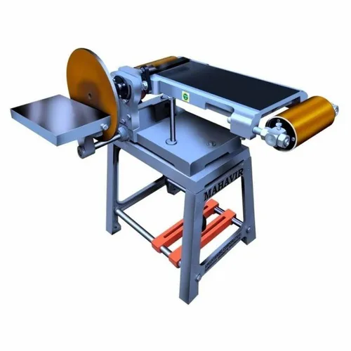 Features 560W induction motor, 7-inch disc diameter, 1220x150mm belt size, and 38mm dust ports. Includes a mitre gauge for precise sanding operations.