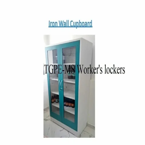 This industrial mild steel locker cabinet features 8 compartments for bags, mobiles, and shoes. It has a hinged door type with a pad lock and powder coating finish.