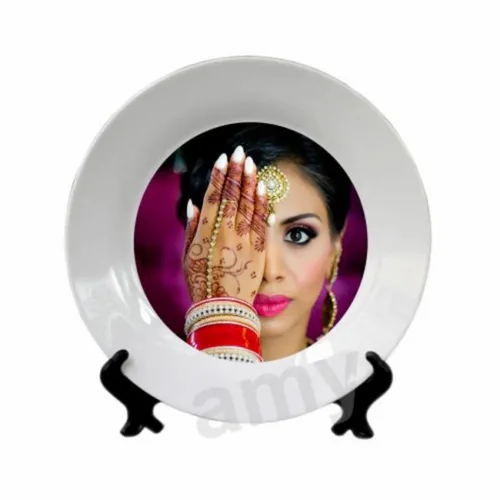 Plain white ceramic plate, 8x8 inch size. Suitable for interior decor applications. This is a new item.