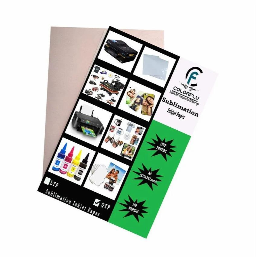 Sublimation paper in A4 size with a GSM range of 80-120. This paper is optimized for sublimation printing, with a net quantity of 100 sheets.