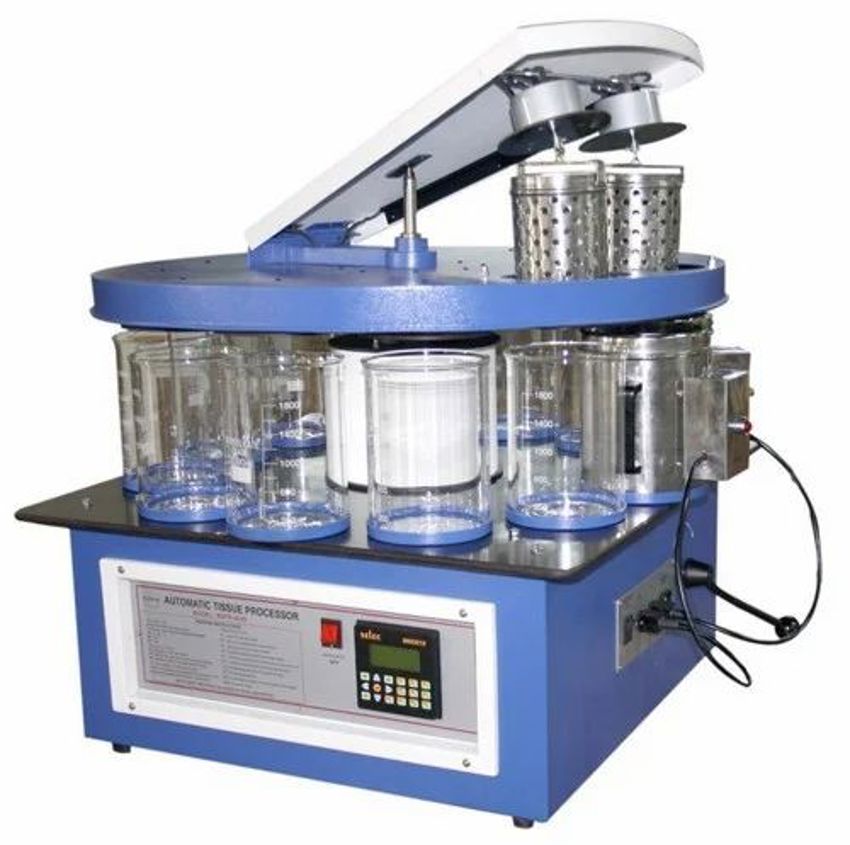Semi-automatic tissue processing equipment. Operates at 50-65°C with 240V. Features RSE-57 model, capacity of 100 tissue cassettes per basket.