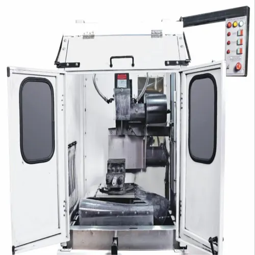 Semi-automatic abrasive cutting equipment for automotive industry. Features 15 HP motor, 220V, 50Hz, 1400 RPM speed, and 120mm oscillation stroke for mild steel.