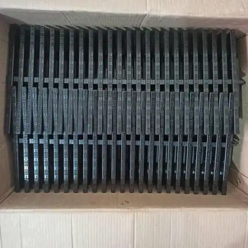 ABS black overflow grating for swimming pools. 8-inch size with 5 pins. Features a smooth finish for pool safety and water flow.