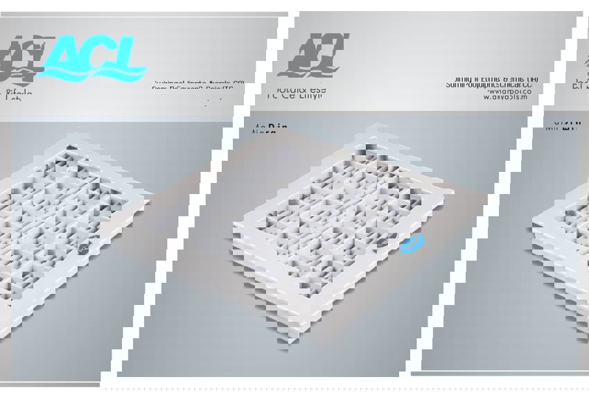 White ABS square pool drain, 9x9 inches, 10 mm thickness. Primarily for drain out applications.