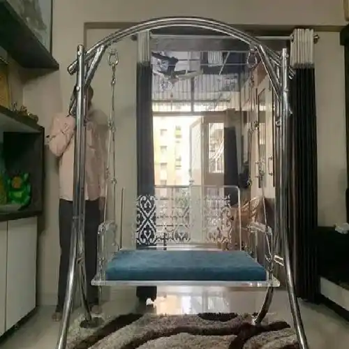 Modern acrylic swing with a 14mm Steel 304 quality stand. Supports 450 kg load, family seating. Ideal for balcony, garden, and lounge.