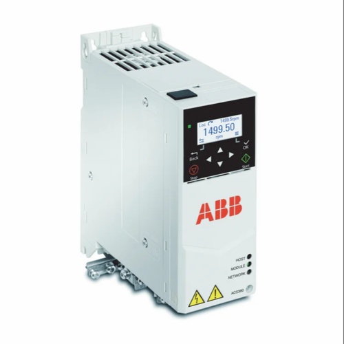 ABB ACS380 VFD Drive, 2.2KW/3HP. Supports scalar and vector control. 200-240V input, 9.8A output current. Features Modbus RS485 and IP20 protection.