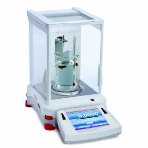 Laboratory scale for specific gravity testing. Features 0.1g/1g accuracy, LCD display, and a 6200g rated load, ideal for precise measurements.