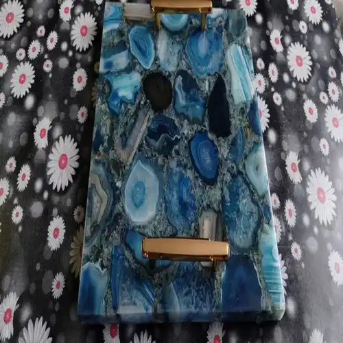Rectangular agate stone decorative serving trays, 12 inches long. Set of 3 plain, in-stock pieces made in India. Perfect for restaurant use.