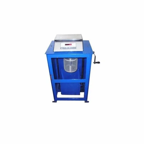 Buoyancy balance for aggregate testing, calibrated by Weight and Measure Department/NABL. Made in India, blue color.