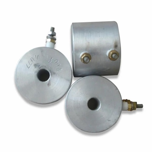 Aluminium cast heater with 500W power and 100mm size. Operates at 220V. Features aluminium heater material. Made in India.