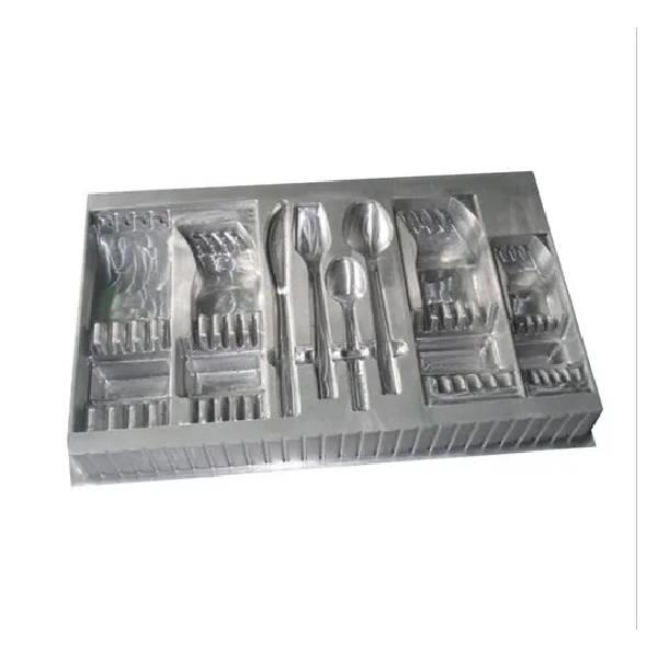 Polished aluminium thermoforming mould, rectangular shape. Suitable for creating tea cups, drinking glasses, and plastic round containers. Packaged securely in a wooden box.