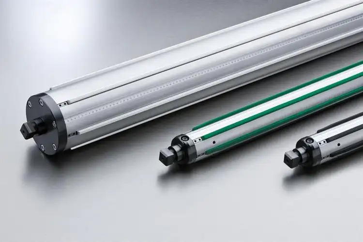 Aluminum and mild steel air expanding shaft, 1500mm overall length. Features polished finish and 3-inch outer diameter. Expanding length customizable up to 4800mm.