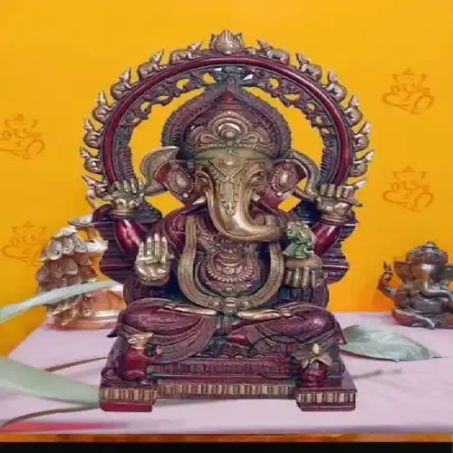 19-inch brass Ganesha statue with antique silver finish. This black idol is crafted from durable brass, ideal for devotional or decorative purposes.