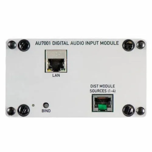 AU7001 Digital Audio Input Module for telecommunication industry. Features 12V input voltage and 100% accuracy. Electrically powered device for reliable audio signal processing.