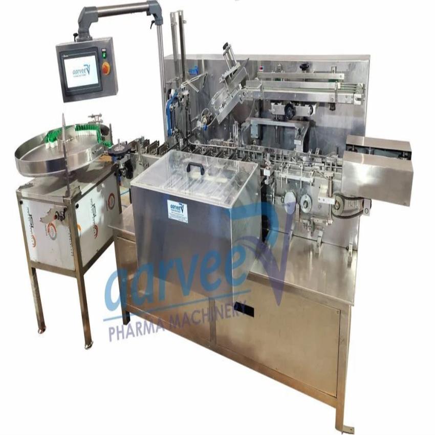 Automatic horizontal cartoning machine with 100 CPM capacity. Features SS-304 material, 2 HP power, 50 Hz frequency, and 230 V voltage. Ideal for industrial packaging needs.