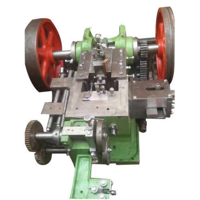 Three-phase automatic bolt making machine. Operates on 220-380 Volt with 5 HP electric power consumption. Designed for efficient mild steel bolt production.
