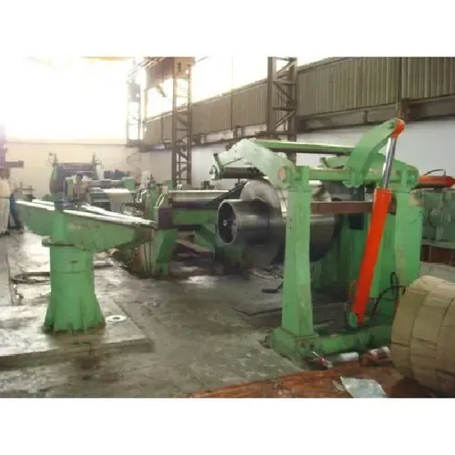 Automatic CR slitting line for Mild Steel. Processes HR/CR/GP/SS/Aluminium at 150 Mtr/Mnt. Features 100 HP power consumption and 500 Mtr/Mnt production capacity.