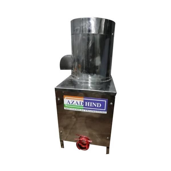 Automatic potato peeling machine with 220kg/hr capacity. Features emery stone peeler material and stainless steel body. Ideal for commercial batch-type potato processing.