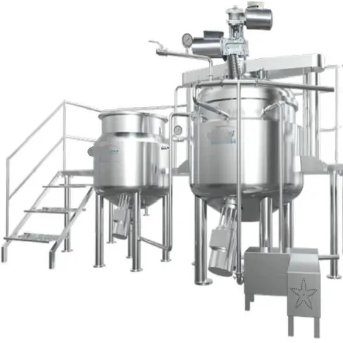 Industrial automatic toothpaste manufacturing machine made of SS. Operates with 4-5 Kg/cm2 steam pressure and 3 Kgs/cm2 internal pressure. Features coated finish.