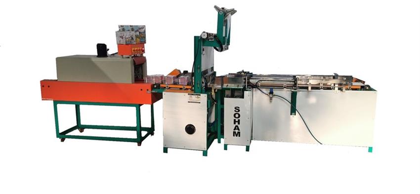 Automatic box batching and pouching machine, 1-2 HP power, up to 15 batches/minute. 250 kg weight, 96x27x40 inch size. Requires 3.5 HP total power. Made in India.