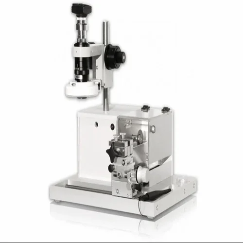 Automatic horizontal cable crimping machine with 1 Ton capacity. Features crimp quality analyzer and micrograph. Runs on electric power, 50 Hz.