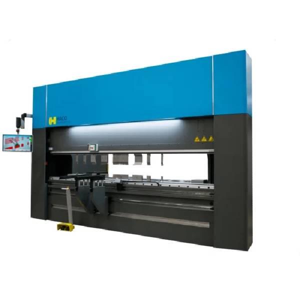 Automatic CNC press brake device with a vertical layout. Features 4-15 kW main motor power, 50 Hz frequency, and three-phase power supply for efficient bending.