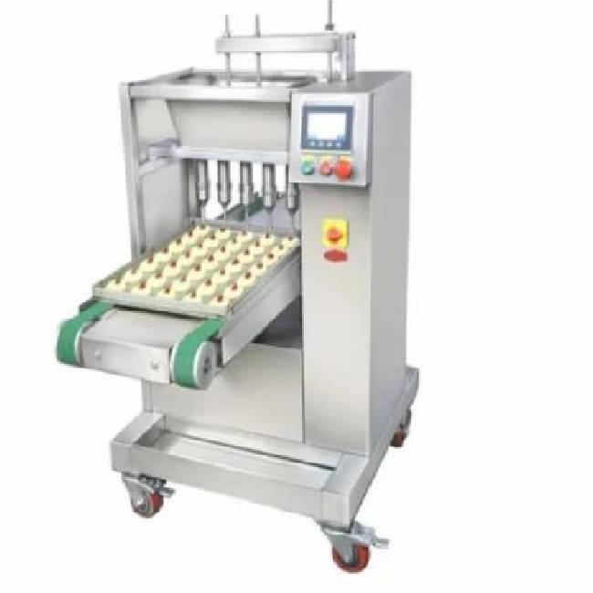This automatic cookie dropping machine is designed for bakery use, efficiently depositing dough. It features a standard design with stainless steel construction for durability and hygiene. Specifications vary by model.