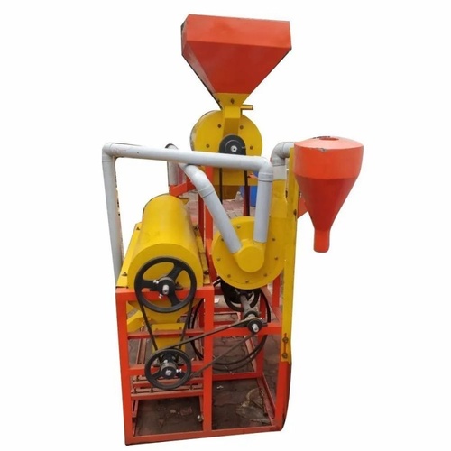 Automatic dal mill machine, three-phase, 100kg/hr capacity. Features 5 HP motor, 2 kWh power consumption, and processes all pulse types. Suitable for automatic operation.