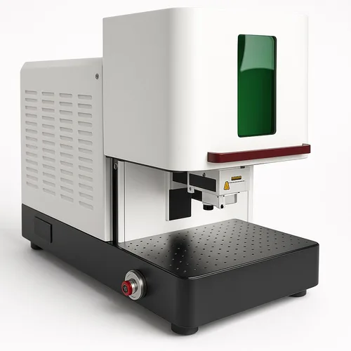 This automatic 50W laser cutting machine utilizes air cooling and a German laser source. It offers a 100,000-hour fiber life and cuts gold and silver with 1-micron depth.