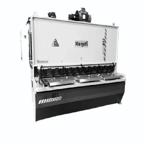 Automatic hydraulic guillotine shear designed for MS and SS. Offers shearing thickness from 2mm to 16mm. Proudly Made in India.