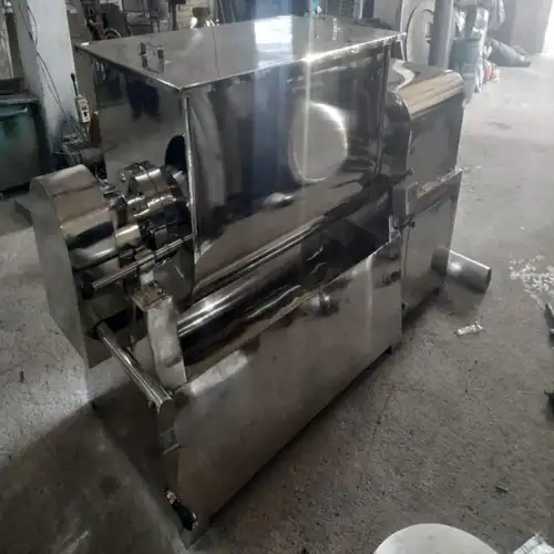 Automatic mass mixture machine for pharma. 220V, three-phase, MS material. Rectangular shape with 100 kg production capacity.