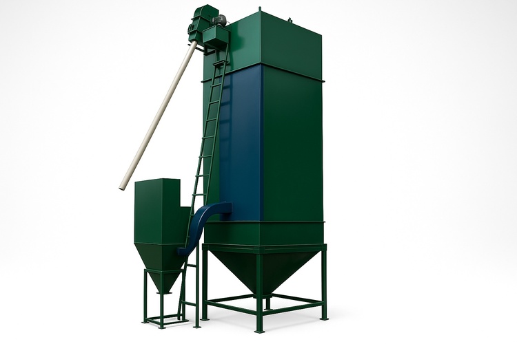 Semi-automatic rice dryer equipment with 1 TPH capacity. Made of MS, operates on three-phase electric power with a 5 HP motor and 6.6kw power.