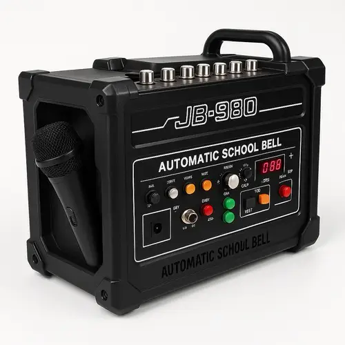 Automatic school bell machine for scheduling bell rings. Ensures timely alerts for school periods. Reliable operation for educational institutions. Standard model.