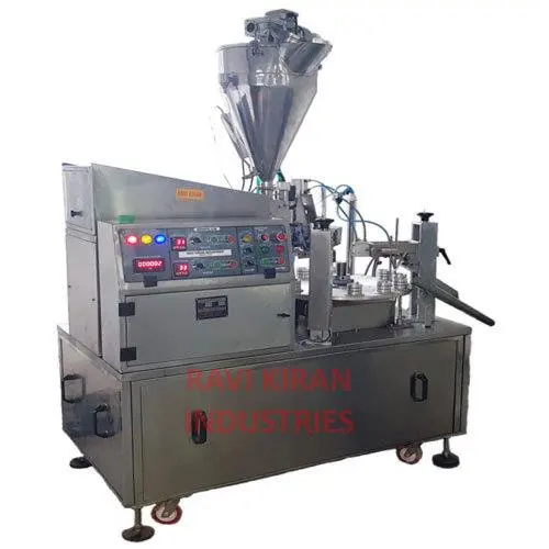 Automatic stainless steel (SS 304) tube filling equipment. 2.2KW power, 220V-380V, 50-60 Hz. Polished finish.