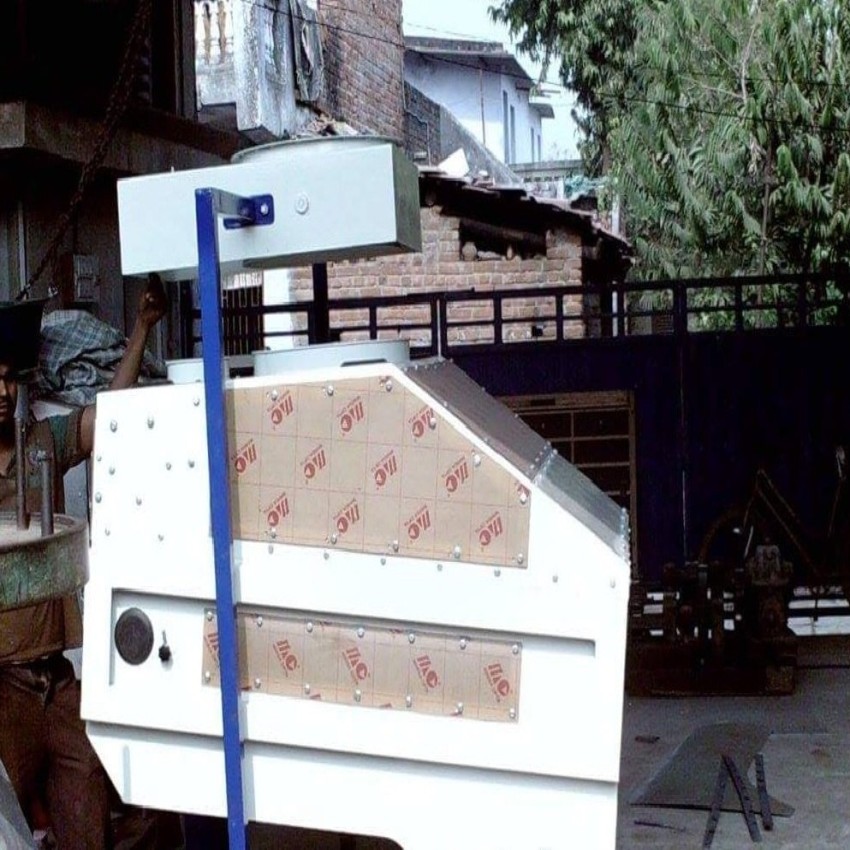 Automatic Mild Steel Vibro Destoner Machine for stone removal. Designed for three-phase electricity connection with a capacity of 2 tons per hour.
