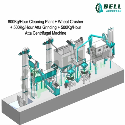 Fully automatic Indian-made wheat flour plant with 500 kg/hr capacity. Constructed from mild steel, it requires a three-phase connection and 50 HP motor.