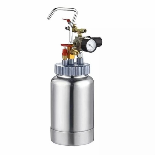 Durable 2 Ltr. painting tank for automotive applications. Features 3.5-4 PSI pressure, 1.5 Kg weight, and 1/4" paint output. Ideal for new paint application on any material.