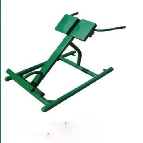 This back extension machine is designed for targeted lower back strengthening and rehabilitation exercises. Features adjustable pad height for user comfort and ergonomic positioning during workouts.