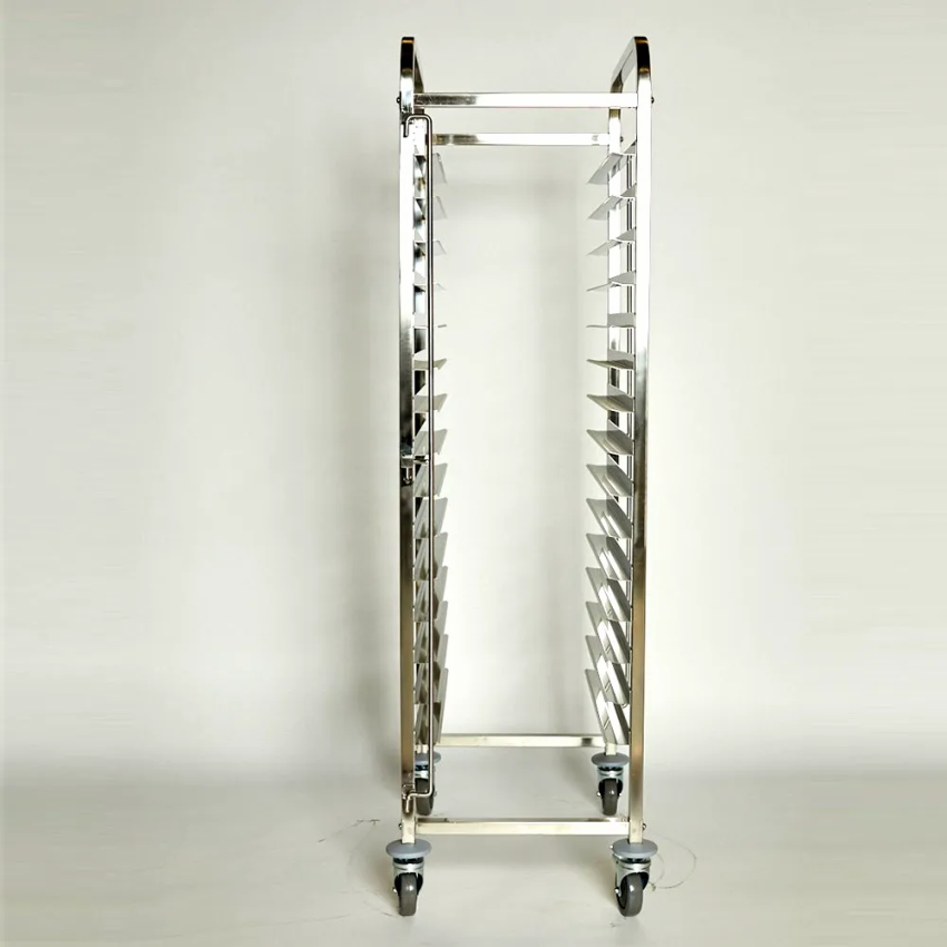 Polished stainless steel multi-trolley for bakery ovens. Size 35x45 Inch, 250 kg load capacity. Silver color, 6mm thickness. Suitable for restaurant use.