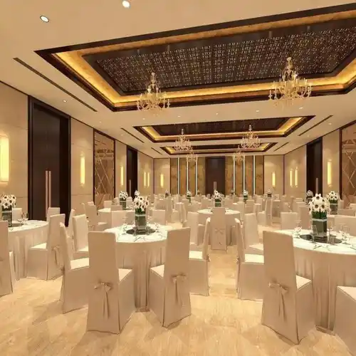 Expert banquet hall interior design service, with 3D design available. Offline service for local projects, covering all aspects of interior work.