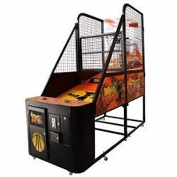 Electric-powered arcade game designed for basketball challenges. Offers engaging gameplay with potential for light and sound features. Ideal for entertainment venues.