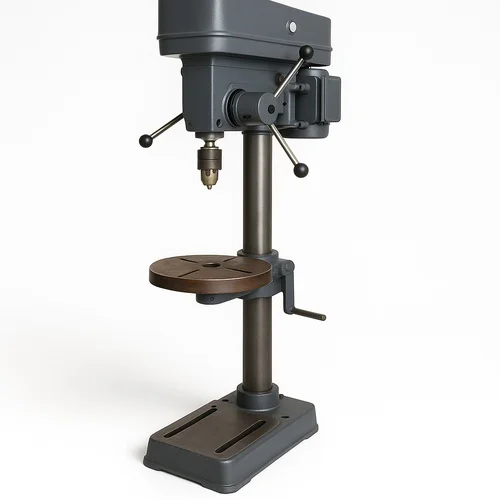 This bench drilling machine is designed for compact workspaces. Made in India, it offers precise drilling for various materials in a workshop setting.