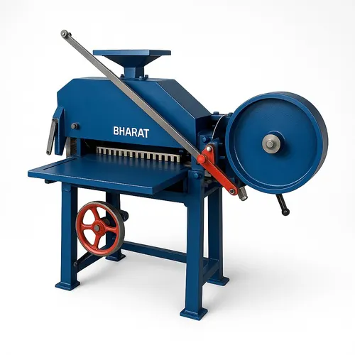 Semi-automatic Bharat notebook making machine. Max notebook size 71 CM, 300 pieces/hour capacity. Single phase, 220 V, with 2 HP motor and 32-inch blade.