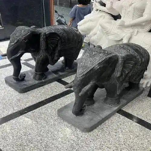 Featuring a striking white and black marble design, this elephant statue offers a unique aesthetic. Its dual-tone finish adds visual interest, making it a standout decorative item.