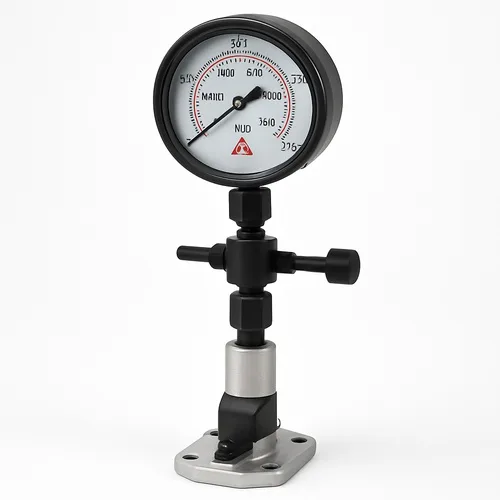 Manual analog injector nozzle tester for laboratory use. Features a black color and analog display, packaged in a box. Designed for precise testing applications.