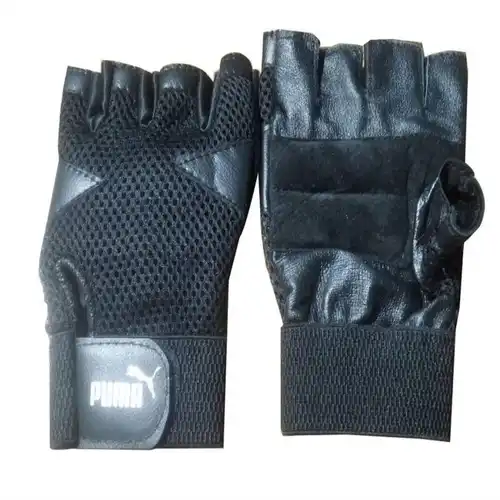 Black leather gym gloves specifically designed for boxing. Available in all sizes. Made in India with dimensions 34.8 x 16 x 12.7 cm.