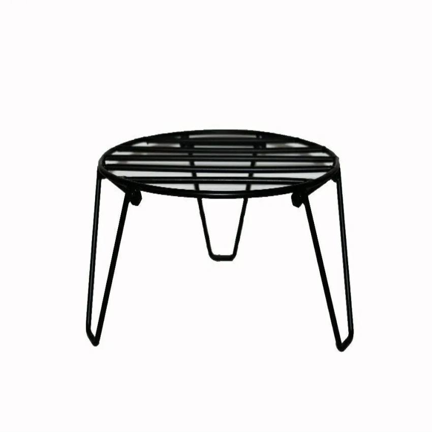 Black iron stand, 11x5 inches, for garden application. Made in India, packaged in a carton box for secure delivery.