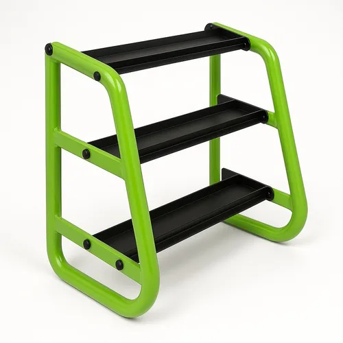 Black MS vertical dumbbell rack for weight lifting. Olympic category, round shape. Suitable for outdoor gyms. Weighs 2.5 Kg.