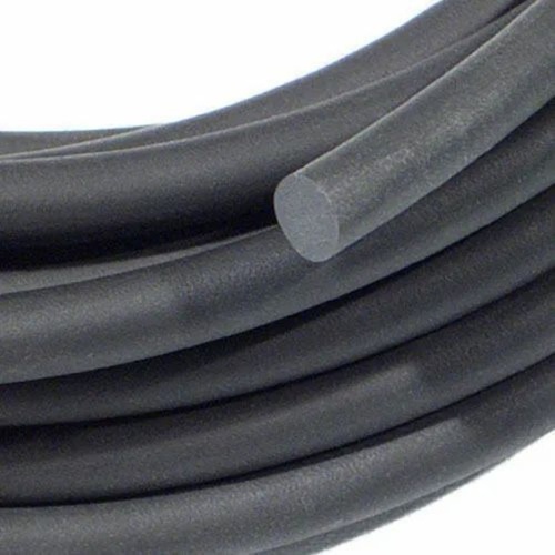 Black rubber cord, round shape, with a tensile strength of 8.0-17.0 MPa. Available in diameters from 2mm to 100mm, hardness 55-75 Shore A.